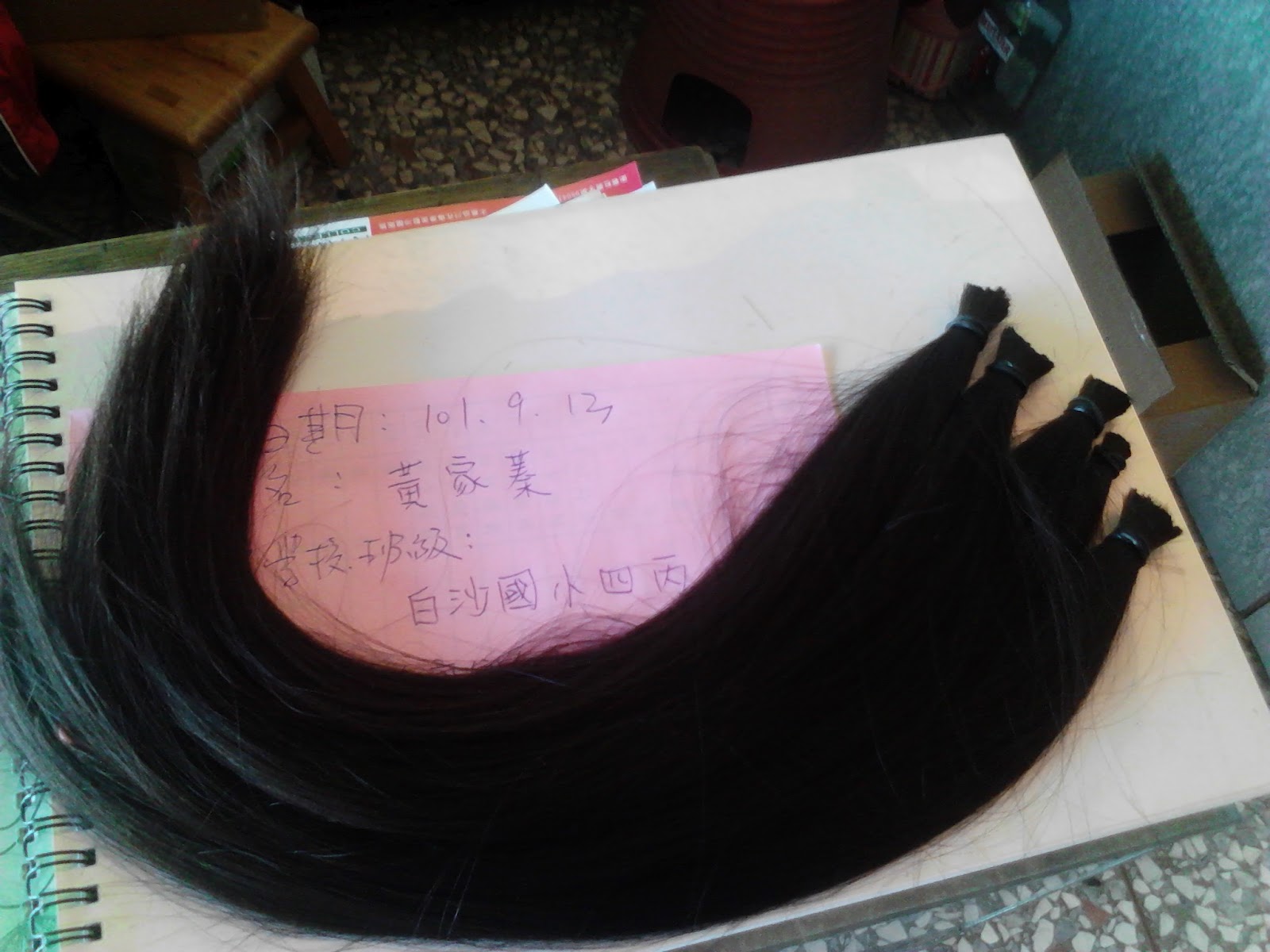 9月13日下午,媽媽帶我去捐髮中心的志工美容院,剪下我留了很多年的長髮,要捐給全國癌症病友服務中心,因為癌症病友在治療中,頭髮會脫落。有了大家捐的頭髮,可以讓他們也有美美的頭髮。